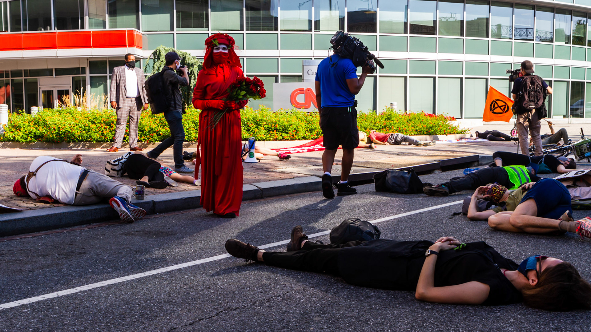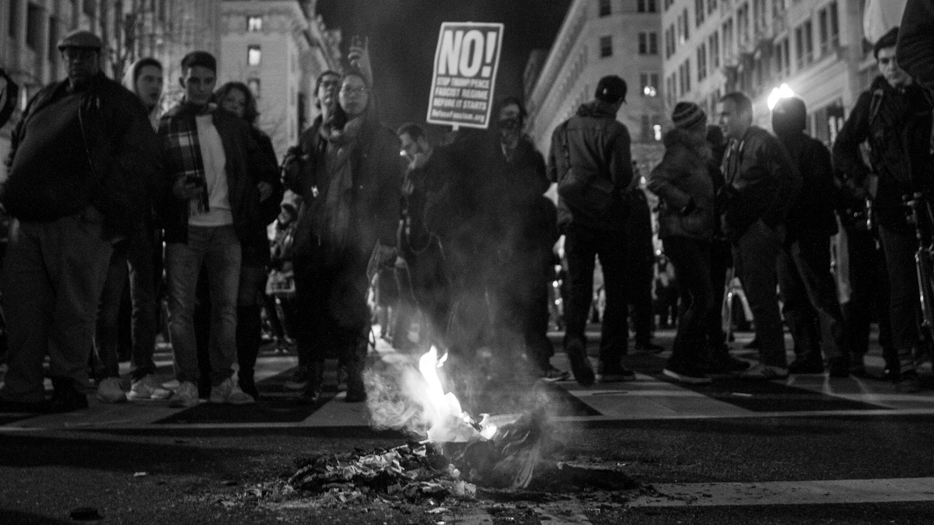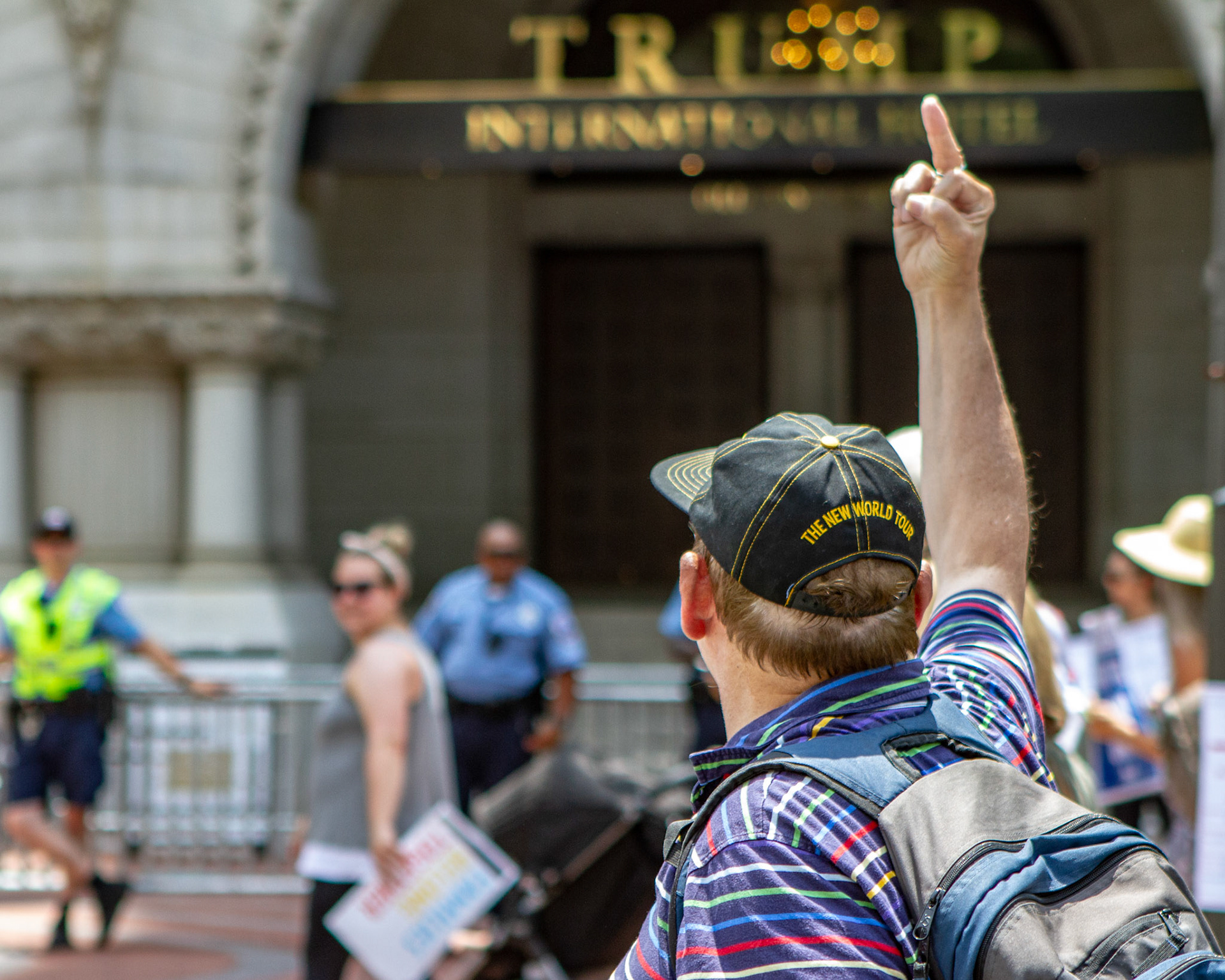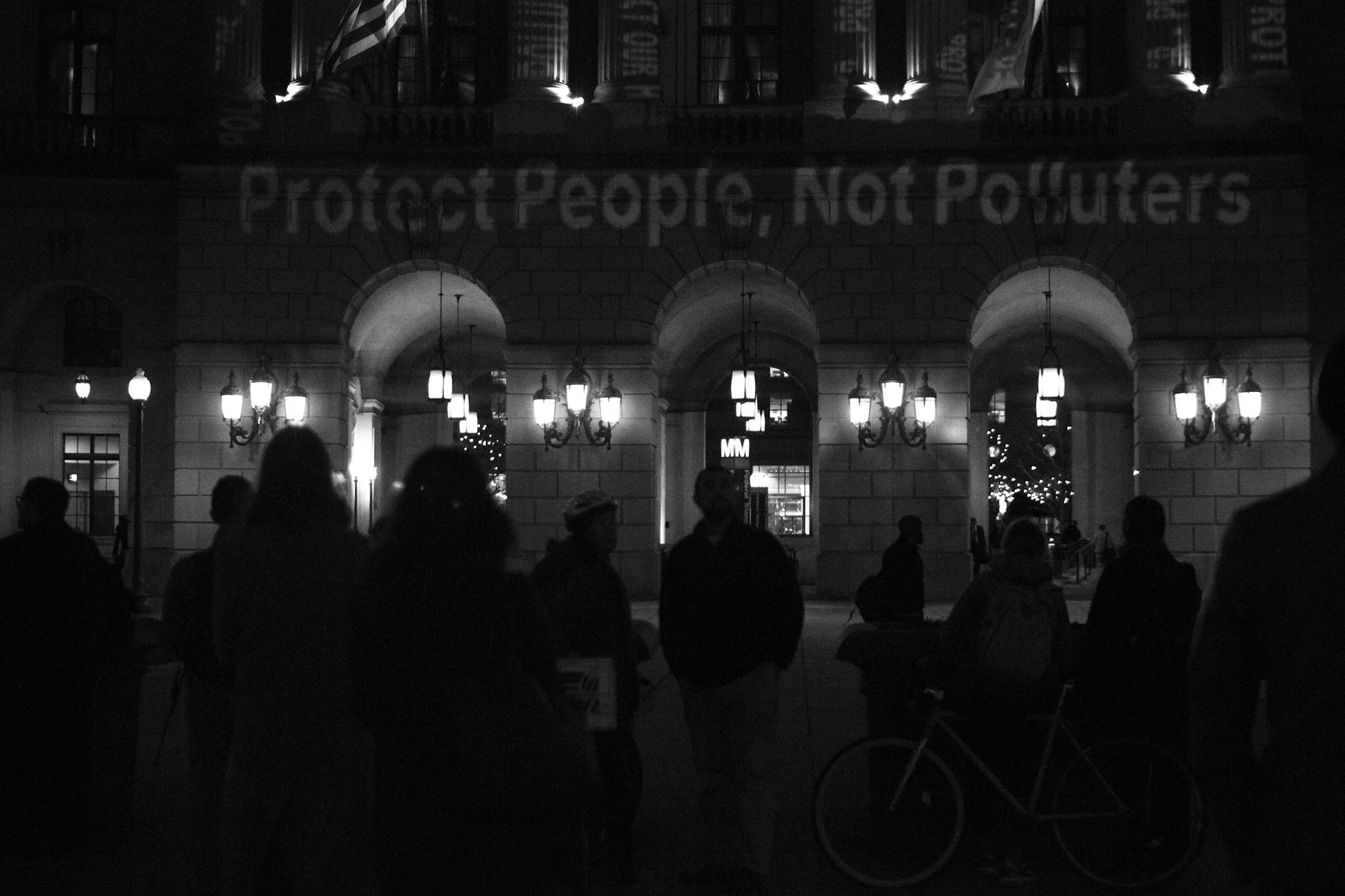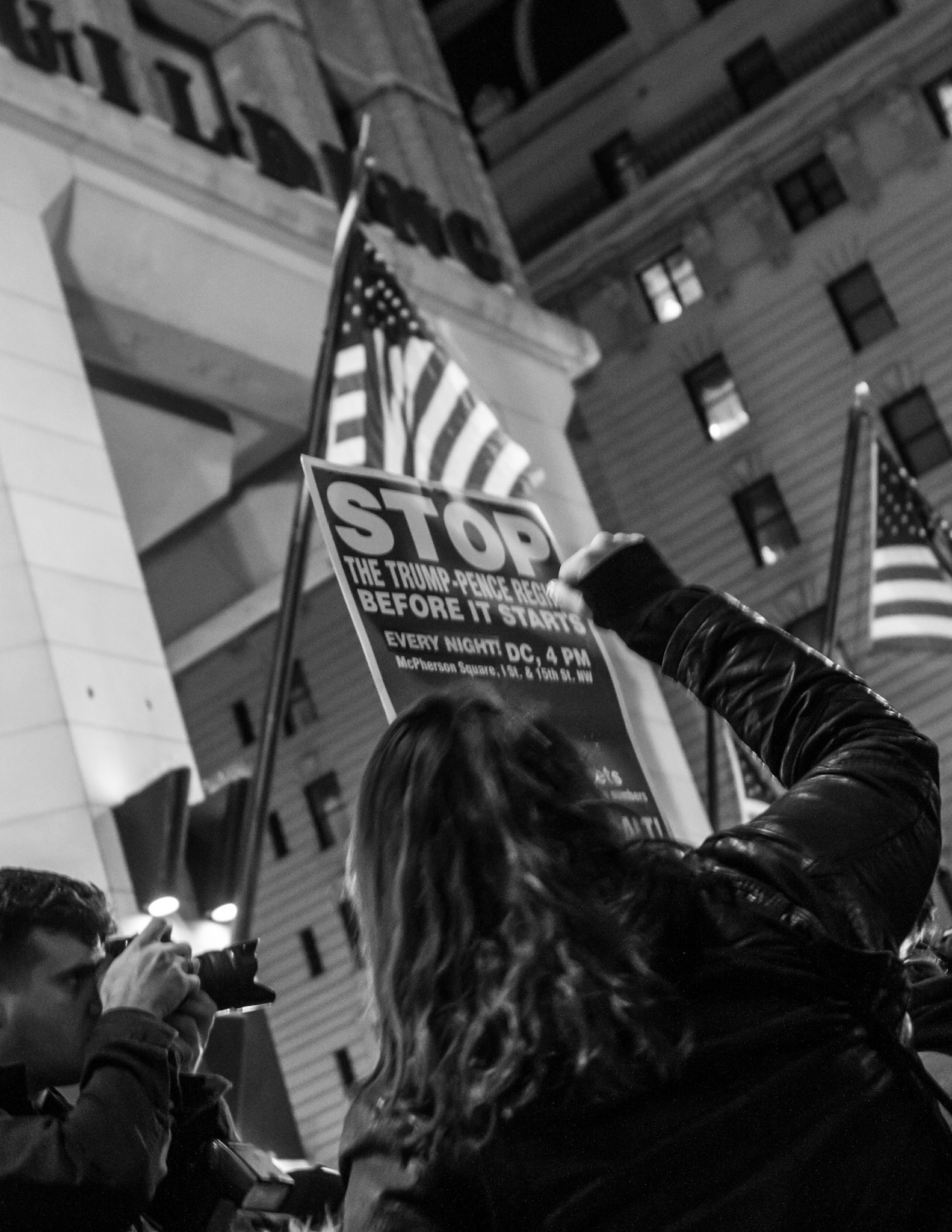 Greenpeace executes a banner drop that can be seen over the White House shortly after the inauguration of Donald Trump